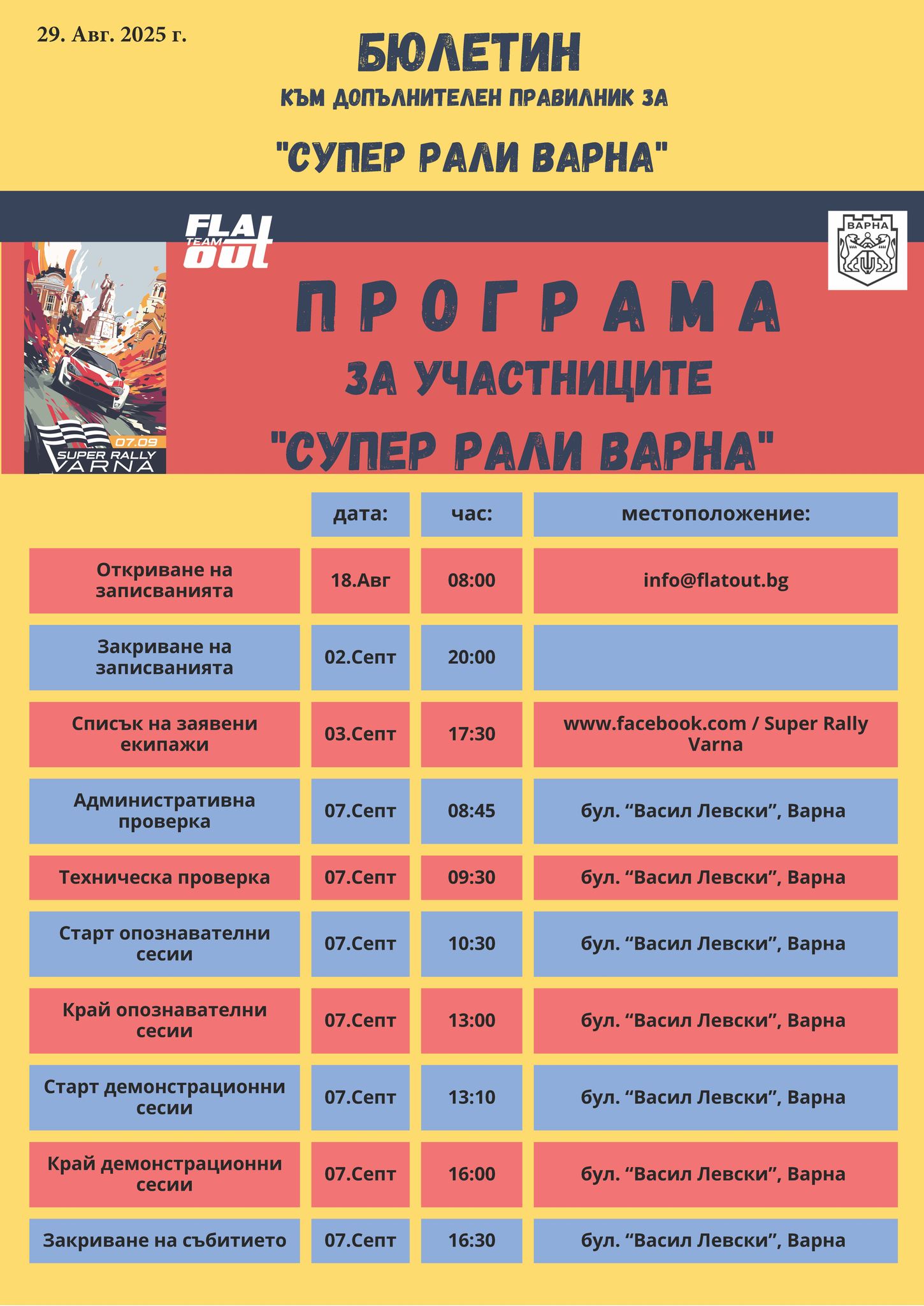 3 септември, 17:30 – публикуване на списъка със заявени екипажи (Facebook: Super Rally Varna)