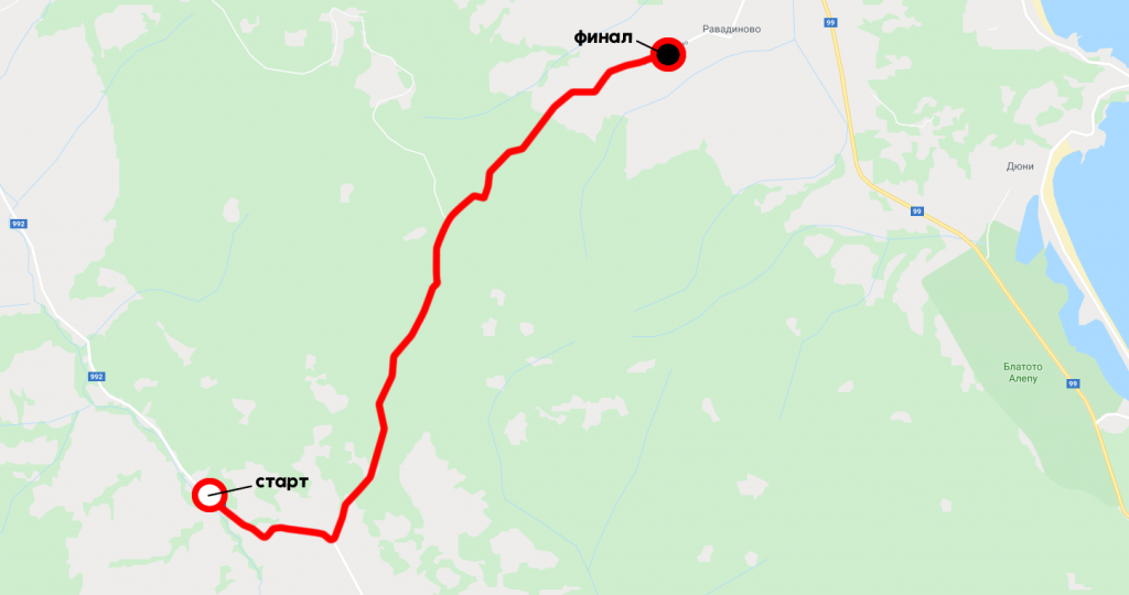 старта с 1.8 км. Така реално етапа Равадиново започва след разклона