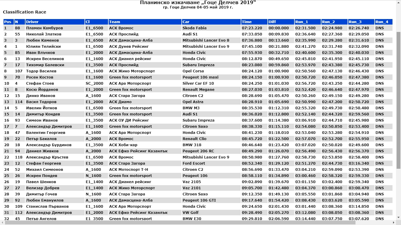 | Рали Сливен 2018 - Григор Григоров за контестацията срещу тях | Общо Класиране: Планински Шампионат 2019 | ||||||||||||||||||||||||||||||||||||||||||||||||||||||||||||||||||||||||