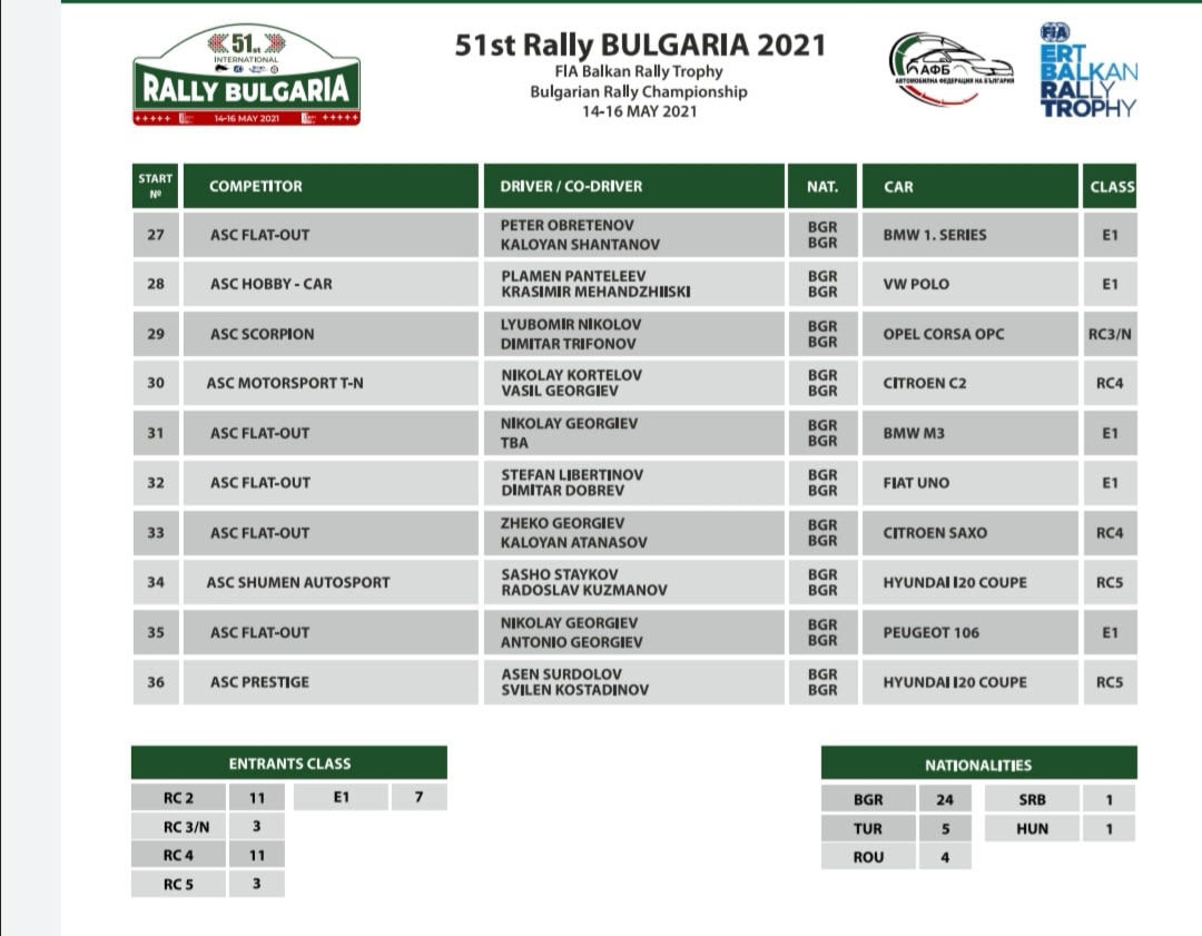 и 16-ти Май град Варна ще бъде домакин на 51-вото Рали България. Състезанието